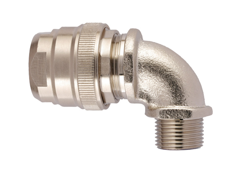 Raccordo a 90° BC-C90 in ottone nichelato maschio e guarnizione in elastometro