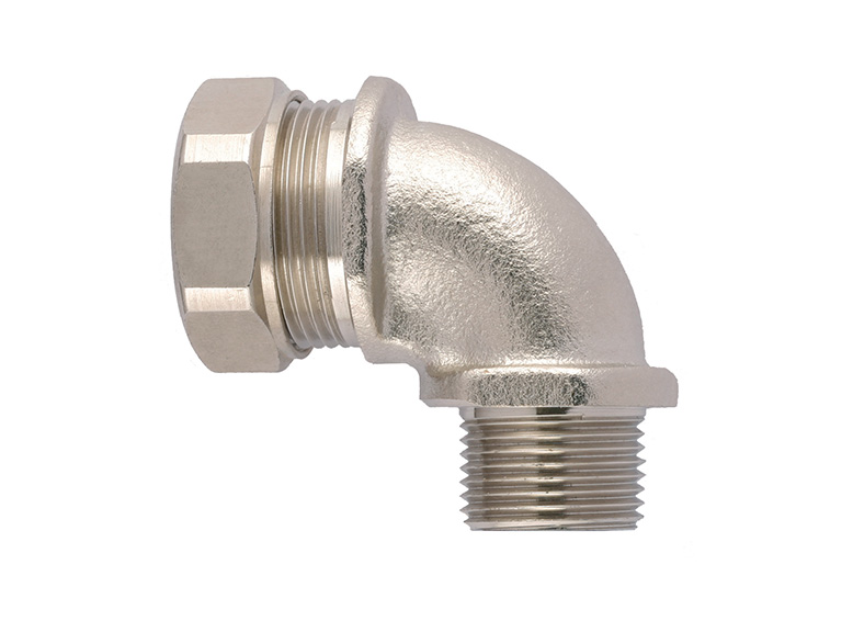 Raccordo a 90° FSS-C90 in ottone nichelato maschio e guarnizione in elastometro