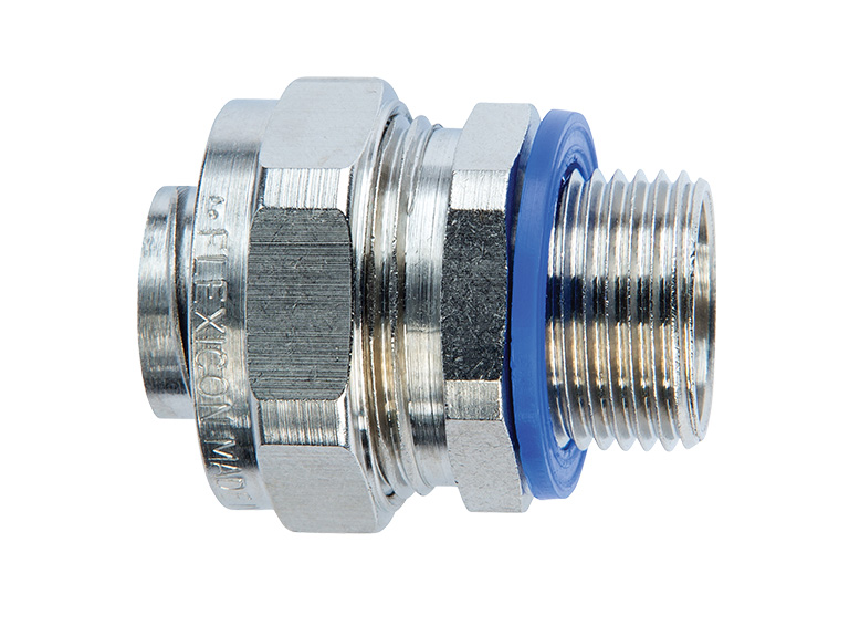 Raccordo LTP-C-UL in ottone nichelato maschio e guarnizione in elastometro