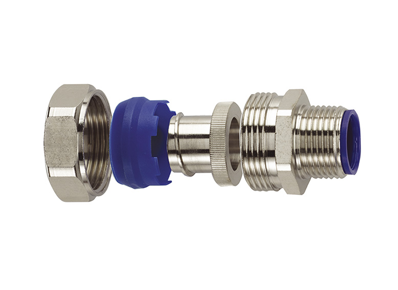 Raccordo LTP-C in ottone nichelato maschio e guarnizioni in elastometro