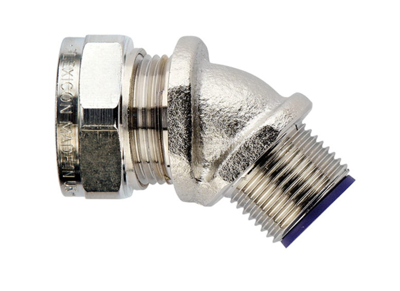 Raccordo a 45° LTP-C45 in ottone nichelato maschio e guarnizione in elastometro