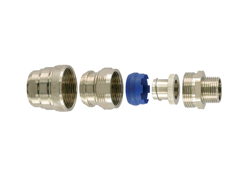 Raccordo dritto LTPB-C in ottone nichelato maschio e guarnizione in elastometro