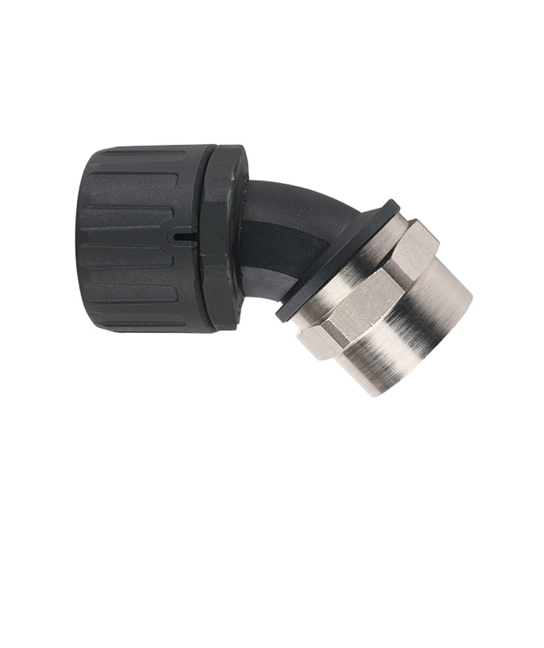 Raccordo di 45° FPA45-BFM in nylon con filettatatura femmina in ottone nichelato