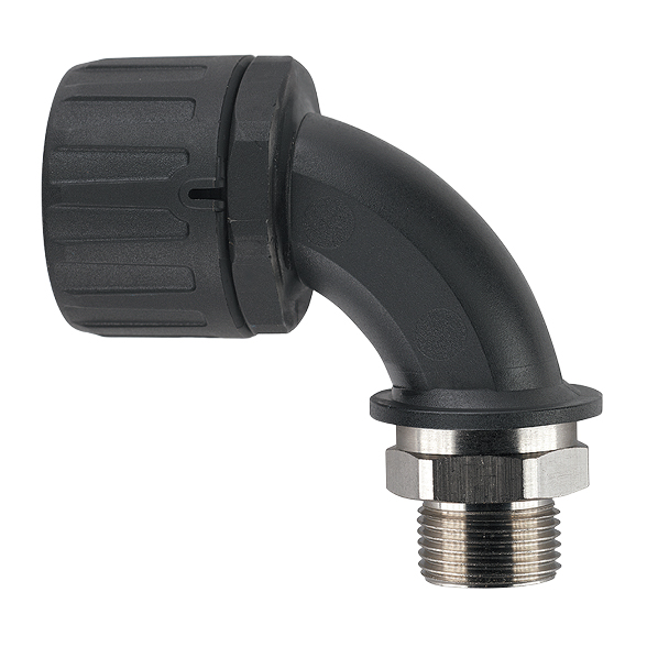 Raccordo a 90° FPA90-BM in nylon e filettatura maschio in ottone nichelato