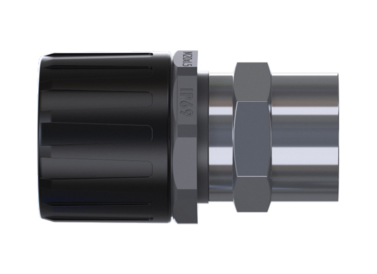 Raccordo FPAU-BFM in nylon con filettatura femmina in ottone nichelato