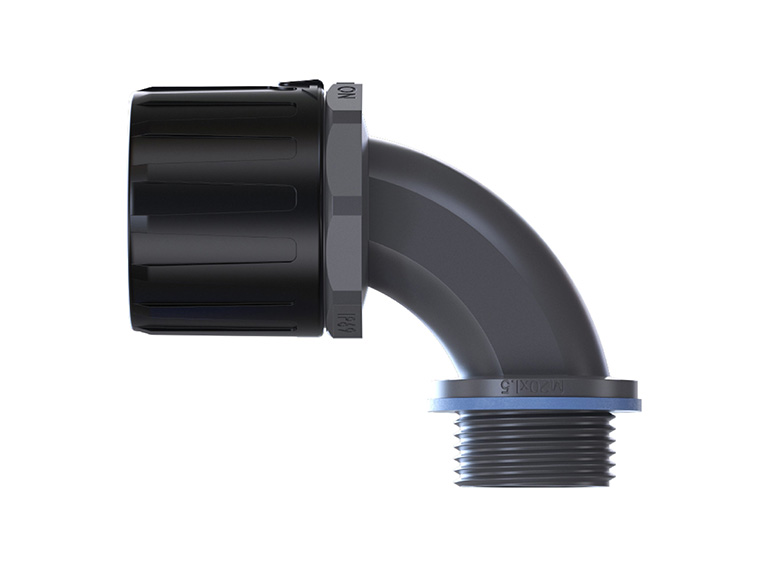 Raccordo a 90° FPAU90 in nylon con flangia e guarnizione